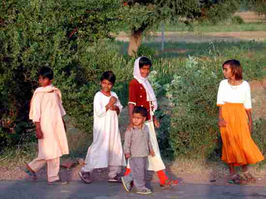 Femmes en Sari marchant sur le bord de la route